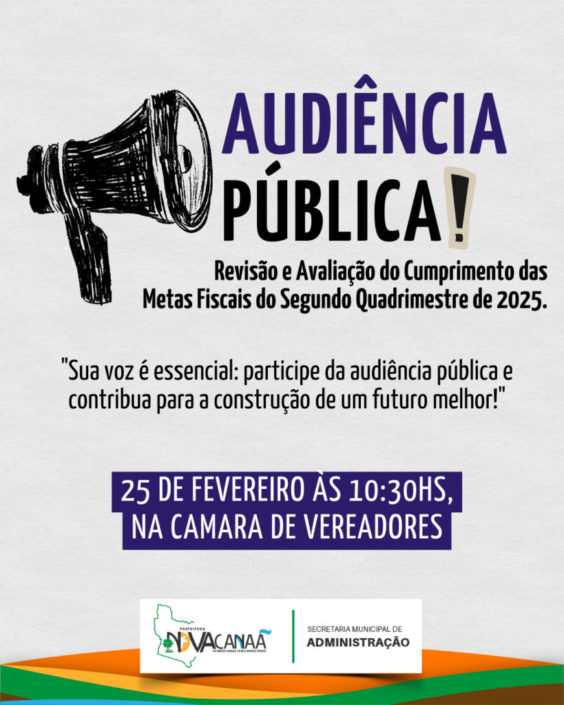 A Prefeitura Municipal de Nova Canaã, por meio da Secretaria de Administração, Finanças e Orçamento, publicou no dia 13 de fevereiro de 2026, o Edital de Audiência Pública nº 01/2026, que convoca a população e representantes de entidades da sociedade civil organizada para participarem da Audiência Pública de avaliação do cumprimento das metas fiscais do […]